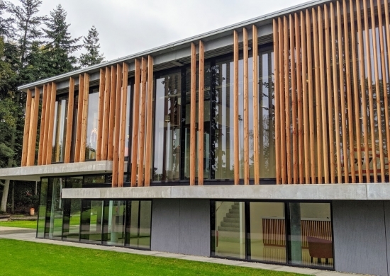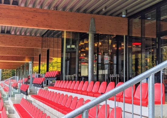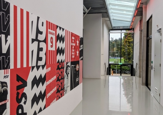 Es war der ausdrückliche Wunsch des Eindhovener Clubs, einen Komplex zu kreieren, in dem Elemente der waldreichen Umgebung wiederaufgenommen werden. Das Gebäude wurde so transparent wie möglich gemacht und das Grün bis an das Gebäude stehengelassen. So wird die grüne Umgebung gleichsam nach innen geholt.