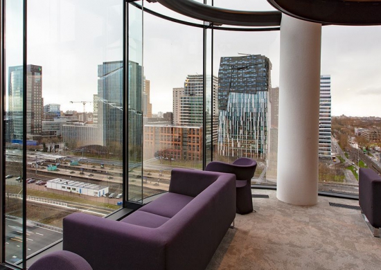 Atrium Amsterdam; Ein echter Hingucker für alle die die Kreuzung der Strawinskylaan und Parnassusweg passieren oder auf der A10 Süd fahren. Atrium steht für Klasse, Komfort und Langlebigkeit. Das imposante Bürogebäude kennzeichnet sich durch die enormen Glaswände und die robuste Ausstrahlung. Das Gebäude fügt sich in die moderne Ausstrahlung großstädtischer Büroviertel ein. Die abgerundeten Ecken, Wellenlinien und vorspringenden Fassaden verleihen den Gebäuden ein dynamisches Erscheinungsbild.