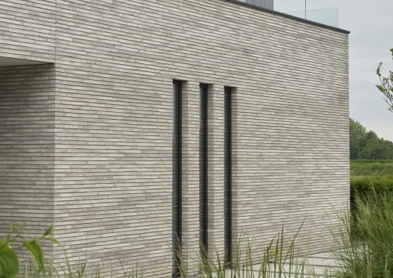 Der Fokus auf umweltbewusstes Bauen spiegelt sich auch in der Verarbeitung der Fassadenprofile und Rahmen der Neubauvilla wider.