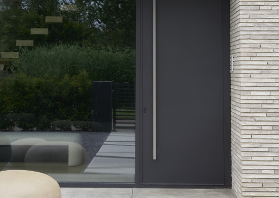 Der speziell abgestimmte dunkle Farbton (RAL 9004, Signalschwarz, SD0307-4077727) passt perfekt zum modernen Look der Villa und die Feinstrukturveredelung lässt die Oberflächen edel wirken.
