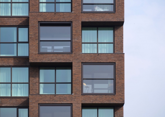 Ein echter Hingucker ist die Wohnanlage mit den ausladenden Balkonen, die mit vertikalen Schiebefenstern von Metaglas ausgestattet sind. Dank des Schiebeeffekts können die Bewohner zwischen einem Innen- und einem Außenraum wählen.